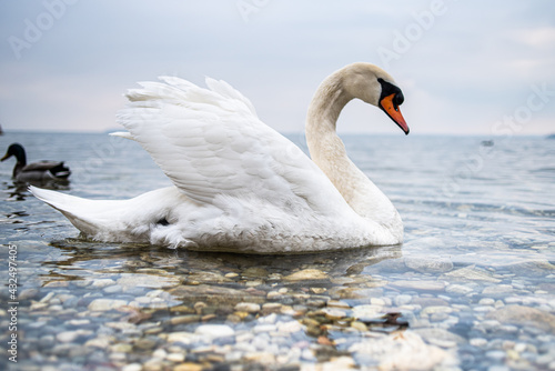 © alipko, Fototapeta premium White wild swan swims in a clear lake