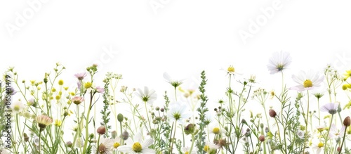 Fototapeta premium White Wildflower Pattern on Summer Meadow with Space for Text