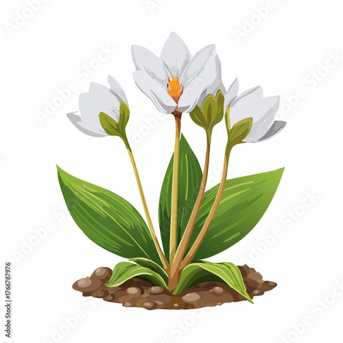 © lestari, Naklejka premium White wildflower plant with soil and leaves