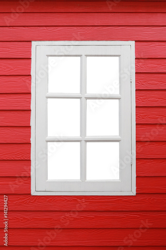 © meepoohyaphoto, Fototapeta premium White window looking on red wood wall.