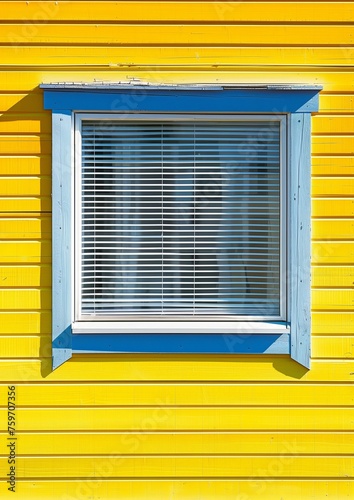© Svetlana, Fototapeta premium White window on yellow shingled wall. Typical colourful architecture. Space for your text.