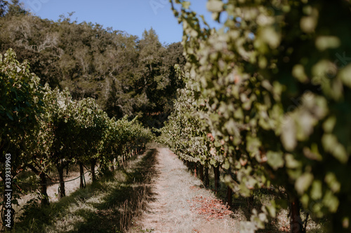 © Gretchen, Fototapeta premium White wine vineyard with grape clusters
