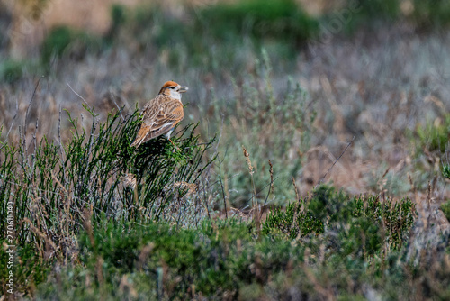 © Yakov, Fototapeta premium White-winged Lark or Alauda leucoptera perches on twig