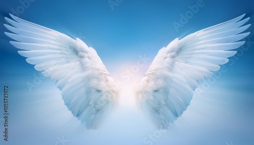 Obraz premium White wings of light - wings shape cloud providing a blue white calming blue...