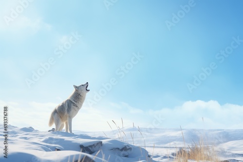 © stickerside, Fototapeta premium white wolf howling in a snowy landscape