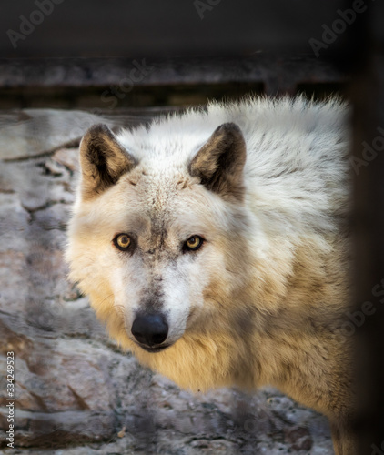 © Milan, Fototapeta premium White wolf in the cage in a zoo
