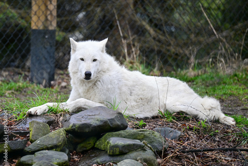 © Jacob, Obraz premium white wolf in the woods