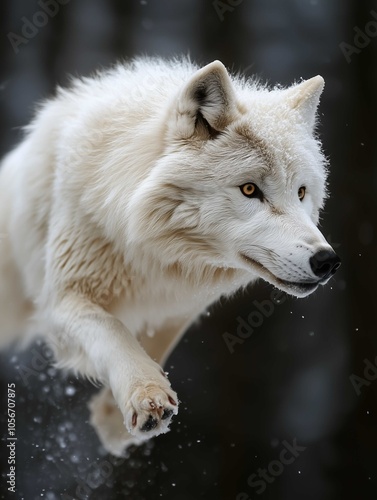 © ANDREI, Obraz premium White wolf jumping profil
