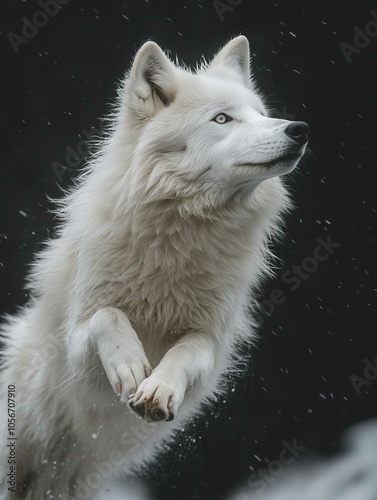 © ANDREI, Obraz premium White wolf jumping profil