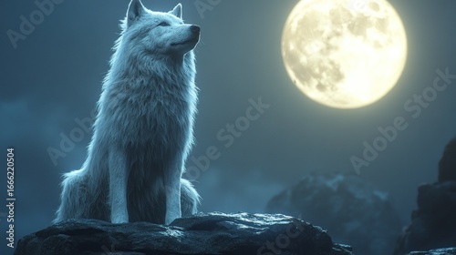 © KIMPOL, Obraz premium White wolf on moonlit mountaintop