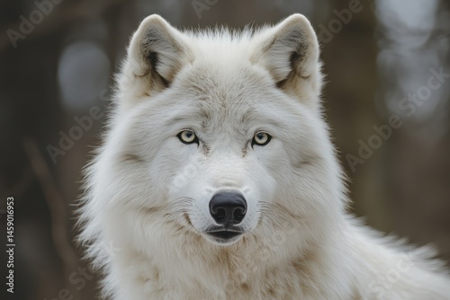 © Igor, Naklejka premium White wolf staring intensely at camera, close-up