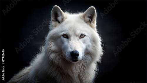 Obraz premium White wolf with a majestic expression in dramatic lighting against a dark...