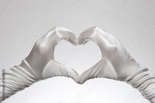 © yarlander, Obraz premium White women's heart shaped gloves isolated on white background
