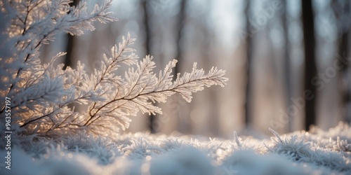 © Den Boro Day, Obraz premium white wood covered with frost frosty landscape.