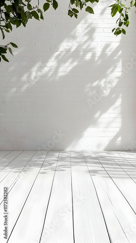 © queen, Fototapeta premium White Wood Floor and Brick Wall Background