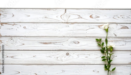Naklejka premium White wood planks with flowers