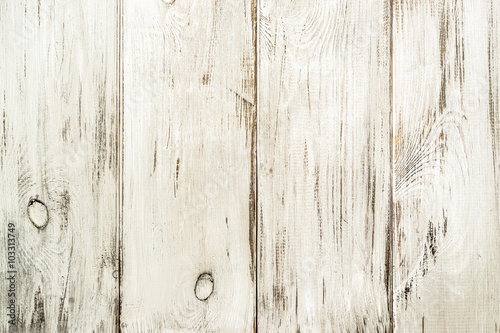 © alicja neumiler, Naklejka premium White wooden background texture from wooden planks.
