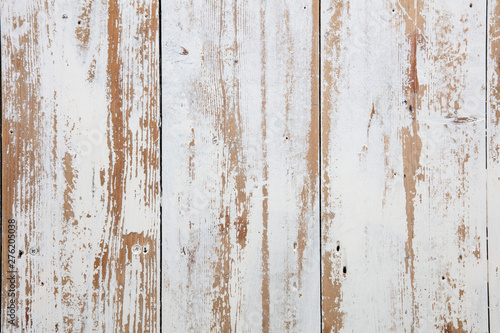Fototapeta premium White wooden floorboards. Distressed worn floorboard background painted white