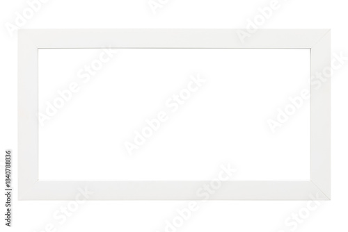 © DR Moura, Obraz premium White wooden frame, rectangular in shape, placed horizontally on a transparent background.