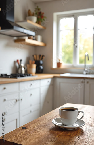 © Roman, Obraz premium White wooden kitchen set, made in minimalist Scandinavian style