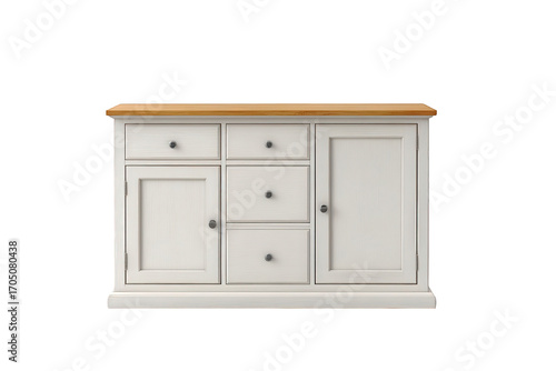 Fototapeta premium White wooden sideboard with oak top isolated on transparent background