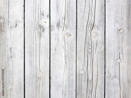 © the_pixel, Naklejka premium White wooden vertical planks texture board background.