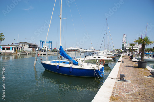 © Ms VectorPlus, Fototapeta premium White yachts in the port waiting. Misano Adriatico, Emilia Romagna, Italy