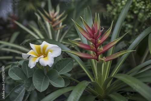 © TOHOMINA, Fototapeta premium White yellow flower red heliconia image
