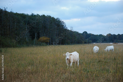 © Birgitta, Fototapeta premium White young cows by late evening