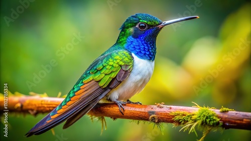 © PomPam, Obraz premium Whitenecked Jacobin, a blur of beauty in slow motion, perched on a branch.