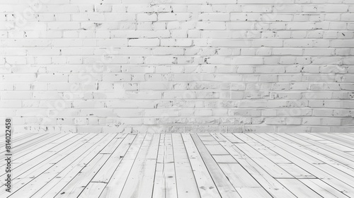 Fototapeta premium Whitewashed brick wall and wooden floor texture.white brick wall and floor
