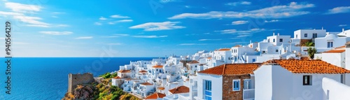 © Penatic Studio, Obraz premium Whitewashed Buildings on a Hillside Overlooking the Sea