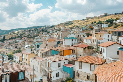 Obraz premium Whitewashed Paradise: A Panoramic View of Charming Coastal Architecture sun...