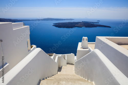 Naklejka premium Whitewashed roofs and stairs in Santorini, Greece