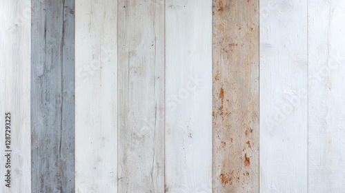 © Bella, Obraz premium Whitewashed vertical wood planks wall texture