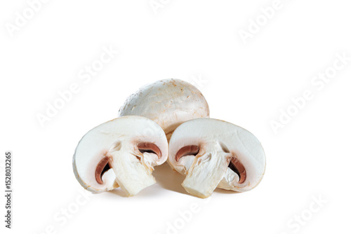 Fototapeta premium Whole and sliced ​​champignons isolated on white background.