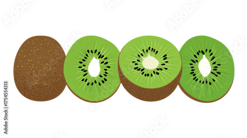 Obraz premium Whole and Sliced Kiwi Fruit Cross Section Ideal for Food and Culinary Use
