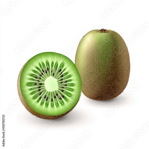 © BD STOCK, Obraz premium Whole and sliced kiwi fruit isolated on white background