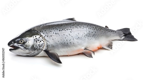 © The Little Hut, Naklejka premium Whole Atlantic Salmon fish isolated on a white studio background : Generative AI