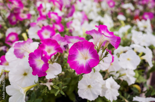 Fototapeta premium Whole blue flowers close up. Flowers grow in a greenhouse. The concept of selling plants, flower business.