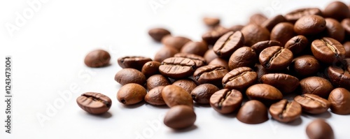 Naklejka premium Whole coffee beans arranged on white background, background, visual
