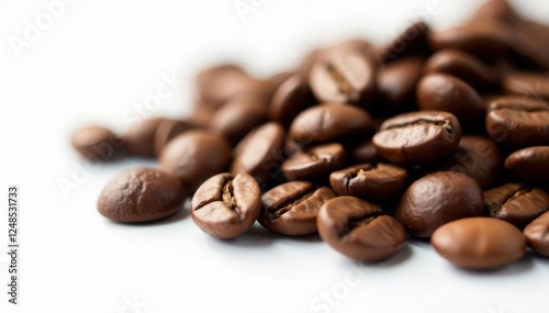Naklejka premium Whole coffee beans close-up on white backdrop, high resolution, drink