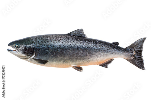 © afikurrahman, Naklejka premium Whole fresh salmon fish isolated on black background