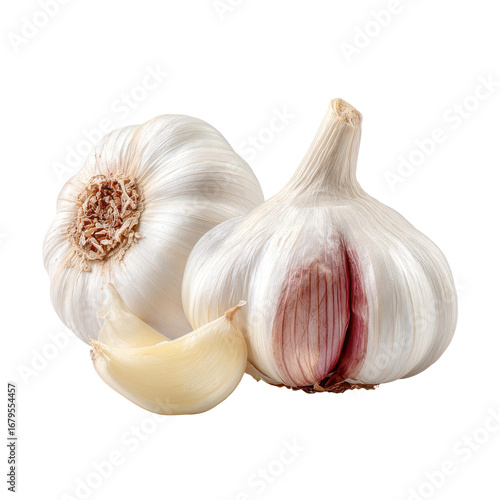 © Hn, Obraz premium whole garlic bulb, characterized by its layered skin, isolated on transparent background