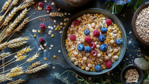 © FoxGrafy, Fototapeta premium Whole grains with a bowl of cereal, morning's glory
