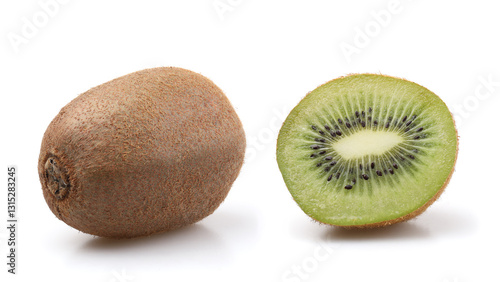 Obraz premium Whole kiwi fruit and half kiwi isolated on white background