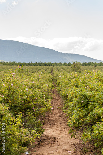 Naklejka premium Whole plantation of Bulgarian pink rose