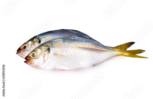 © yodaswaj, Fototapeta premium whole round fresh horse mackerel on white background