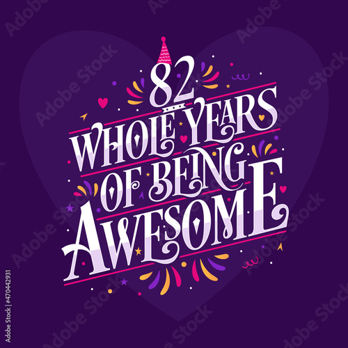 Fototapeta premium 82 whole years of being awesome. 82nd birthday celebration lettering