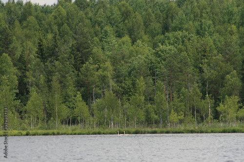 Obraz premium Whooper swan (Cygnus cygnus), also known as the common swan captured in the North of Belarus